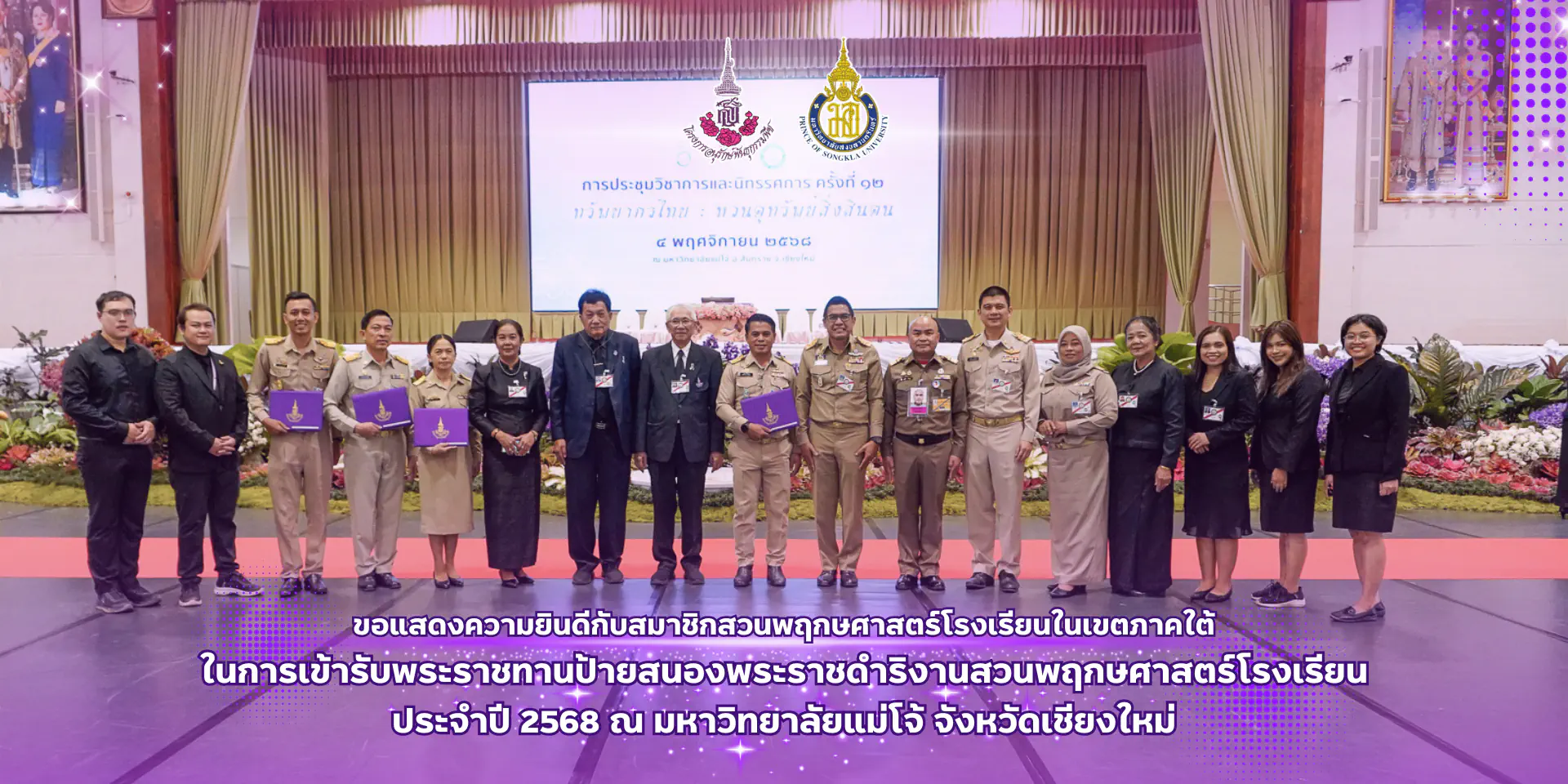 ศูนย์แม่ข่ายประสานงานอพ.สธ. มหาวิทยาลัยสงขลานครินทร์ ขอแสดงความยินดีกับสมาชิกสวนพฤกษศาสตร์โรงเรียนในเขตภาคใต้ ในการเข้ารับพระราชทานป้ายสนองพระราชดำริงานสวนพฤกษศาสตร์โรงเรียน ประจำปี 2568 ณ มหาวิทยาลัยแม่โจ้ จังหวัดเชียงใหม่